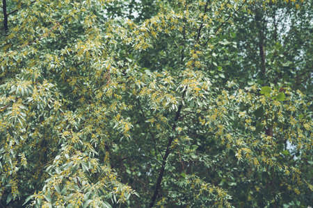 russian olive narrow flowers blooming in spring
