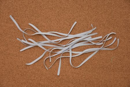 Top view of Untangled tangle on the white desk. Sunny day. Flat lay with copy space for text.