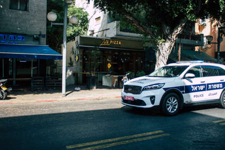Tel Aviv Israel September 27, 2019 View of a Israeli police car rolling in the streets of Tel Aviv in the afternoon