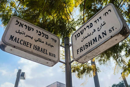 Tel Aviv Israel February 20, 2020 View of street sign in the city of Tel Aviv in the morning