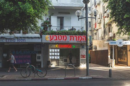 Tel Aviv/Israel-12/10/18: local money changer on Dizengoff Street in Tel Aviv