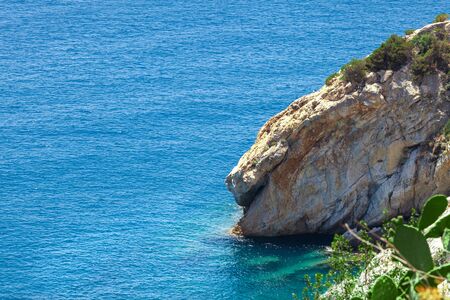 Wild sea landscape with white rocks and blue water in Monte Enfola, Elba island, Italy