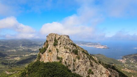 Elba Island, Italy. Amazing aerial view from drone of mountains and landscape.