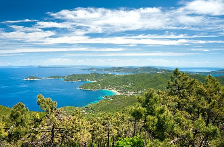 Landscape aerial view of Isola d'Elba seen from the top of Monte Capanne the highest peak in the island, reachable by cableway.