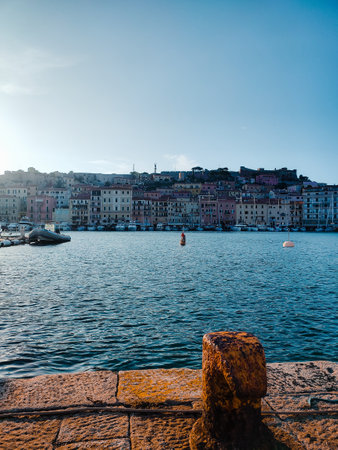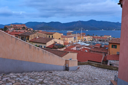 portoferraio, elba island, tuscany, italy. daylight, small clouds, sunset. the old city, the turistic pier.