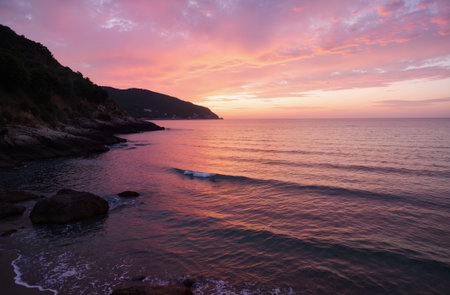 Sunset over the sea in Costa Brava, Catalonia, Spain