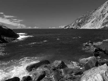 Cinque Terre, Italy - 09/02/2020: Beautiful landscape of a coastal fishing village, amazing view on many little colorful houses, traditional architecture of the little Italian town called Cinque Terr