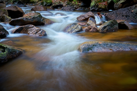 Long exposure of a river in the forest in autumn