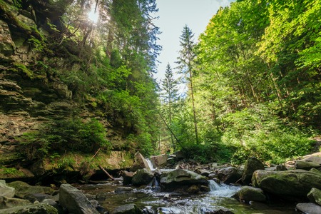 Mountain stream in the forest. Beautiful nature scene in summer.