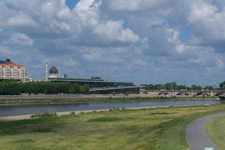 View from the Augustus Bridge in Dresden to the Marienbruecke and the Elbe