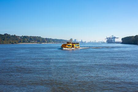 The yellow boat on The Elbe river in Hamburg, Germany.