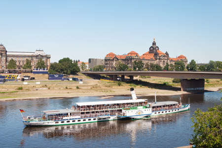19 MAY 2018 - DRESDEN, GERMANY: travel ship floating on Elbe river