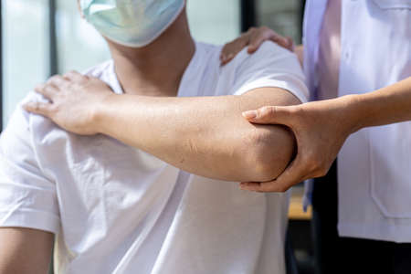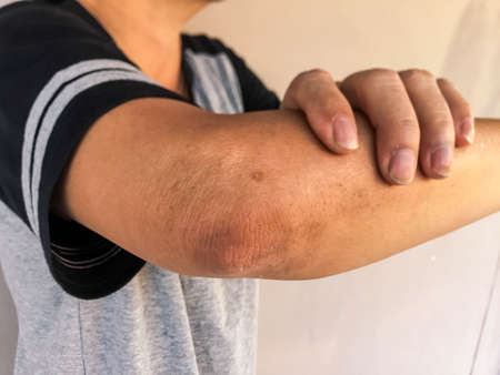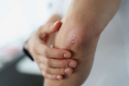 Male elbow and flaky skin and psoriasis