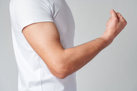 Arm tendon inflammation in male anatomy showing tendinitis of forearm muscles
