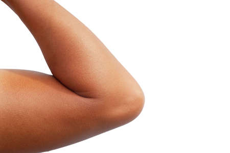 The elbow of an asian male soldier with isolate on white background