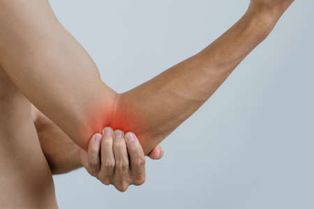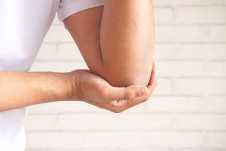 man with elbow pain, Pain relief concept.