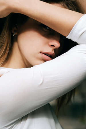 Close up portrait of handsome guy. Sexy man. Portrait of beautiful male model with trendy hairdo in casual shirt.