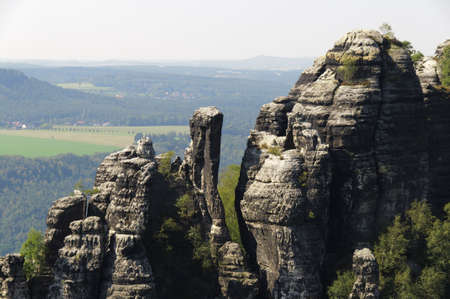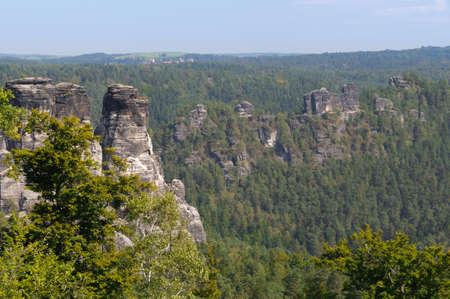 National park Saxon Switzerland, Germany: View from viewpoint of Bastei in Saxon Switzerland, National park Saxon Switzerland. Germany, Kurort Rathen near Dresden