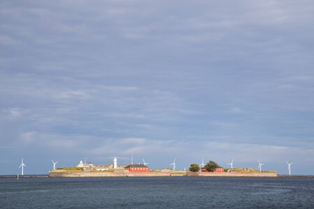 Copenhagen, Denmark - August 17, 2016: View of Trekroner fort at the entrance of Copenhagen harbour