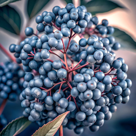 ripe elderberry berries macro selective focus