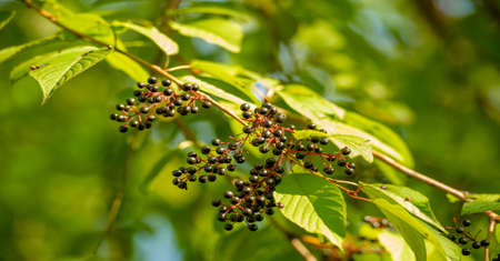 Sambuca Nigra berries elderberries growing in a forest in Poland