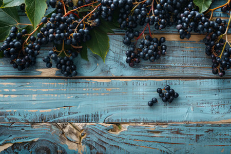 Wild grapes on dark blue background