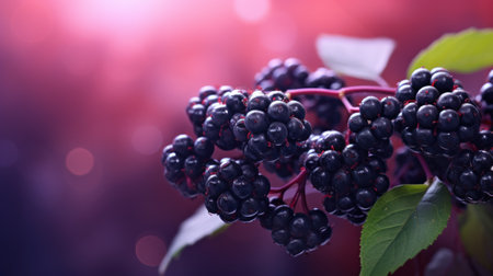 A close up 3D illustration of a vibrant elderberry cluster. showcasing the intricate details of the berries and leaves. Perfect for adding a touch of nature to your designs.