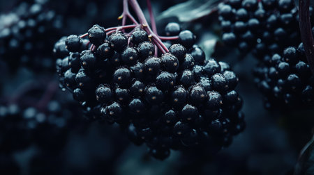 A midnight blue elderberry cluster, Ai generated image