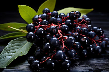 Elderberry fruit on a wooden table