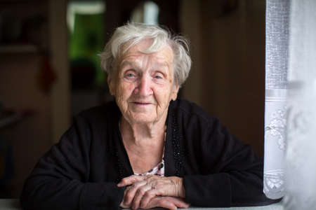 Portrait of an elderly woman close-up in the house.