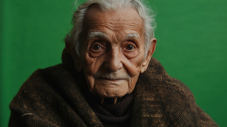 An elderly individual with intricate facial features symbolizing legacy and history