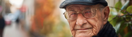 Portrait of an old man with a cap in the park.