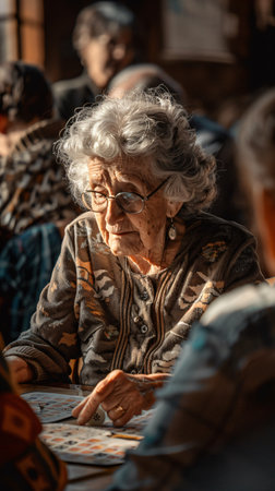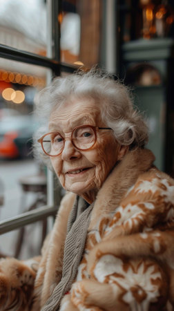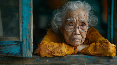 A warm and intimate portrait of an elderly woman with expressive eyes, showcasing the depth of her experiences and emotions