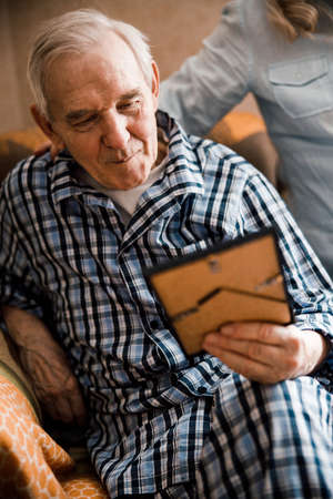 old woman alone in her room. 95 years old grandmother thinking about her life and memories