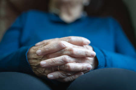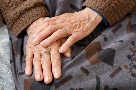 Hands of an elderly person. The concept of lonely old age, sadness and past tense, help and care older people. Image.