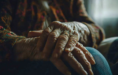 Elderly Hands Gently Held in Warm Light, Symbolizing Compassion