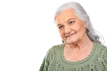 Portrait of a smiling senior woman. Studio shot over grey background.