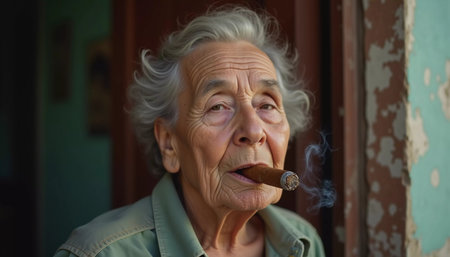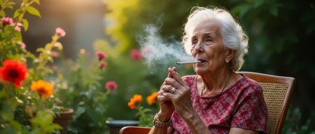 Happy aged lady enjoying ciggy