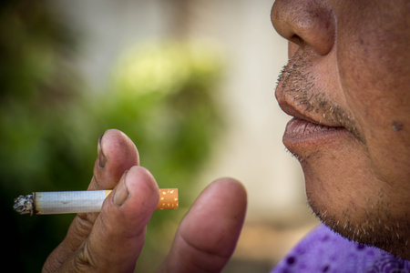 Close up of Man smoking cigarette. People, healt care concept