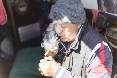 Old man who smokes a cigar