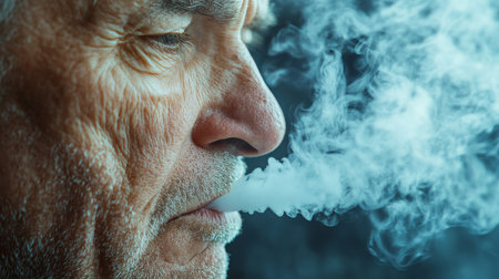 Portrait of senior man smoking electronic cigarette; light effect