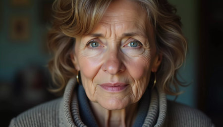 A warm and intimate portrait of an elderly woman with expressive eyes, showcasing the depth of her experiences and emotions