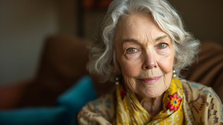 Portrait of a beautiful senior woman in the interior of her house