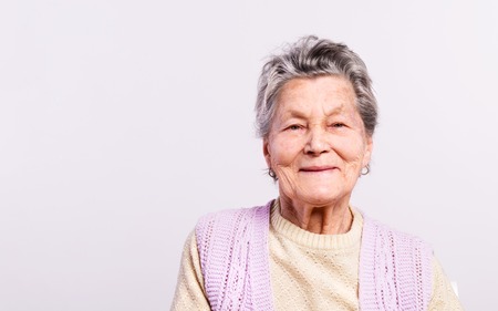 Portrait of a senior woman in studio. Copy space.