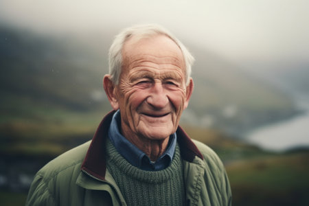 A portrait of a beautiful senior 70- 80s man. AI generated
