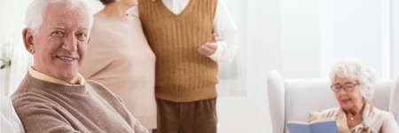 Happy mature woman having fun in geriatric clinic or or nursing home