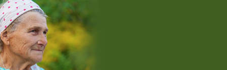 Portrait Sad old woman. Portrait of a gray-haired adult grandmother against the background of nature. Depressed elder suffering from loneliness