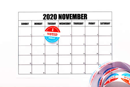 Vote Buttons Badge Isolated on White Background, 2020 US elections, panorama, copy space