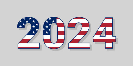 2024 numbers in american flag colors, USA Presidential Elections Event, vector design element