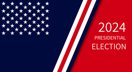 USA election 2024 background. Vector background for USA Presidential Election 2024. Label, poster, template, or banner illustration with USA flag elements design.